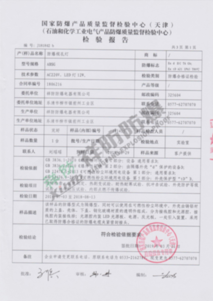 ABSg 合格证 检验报告